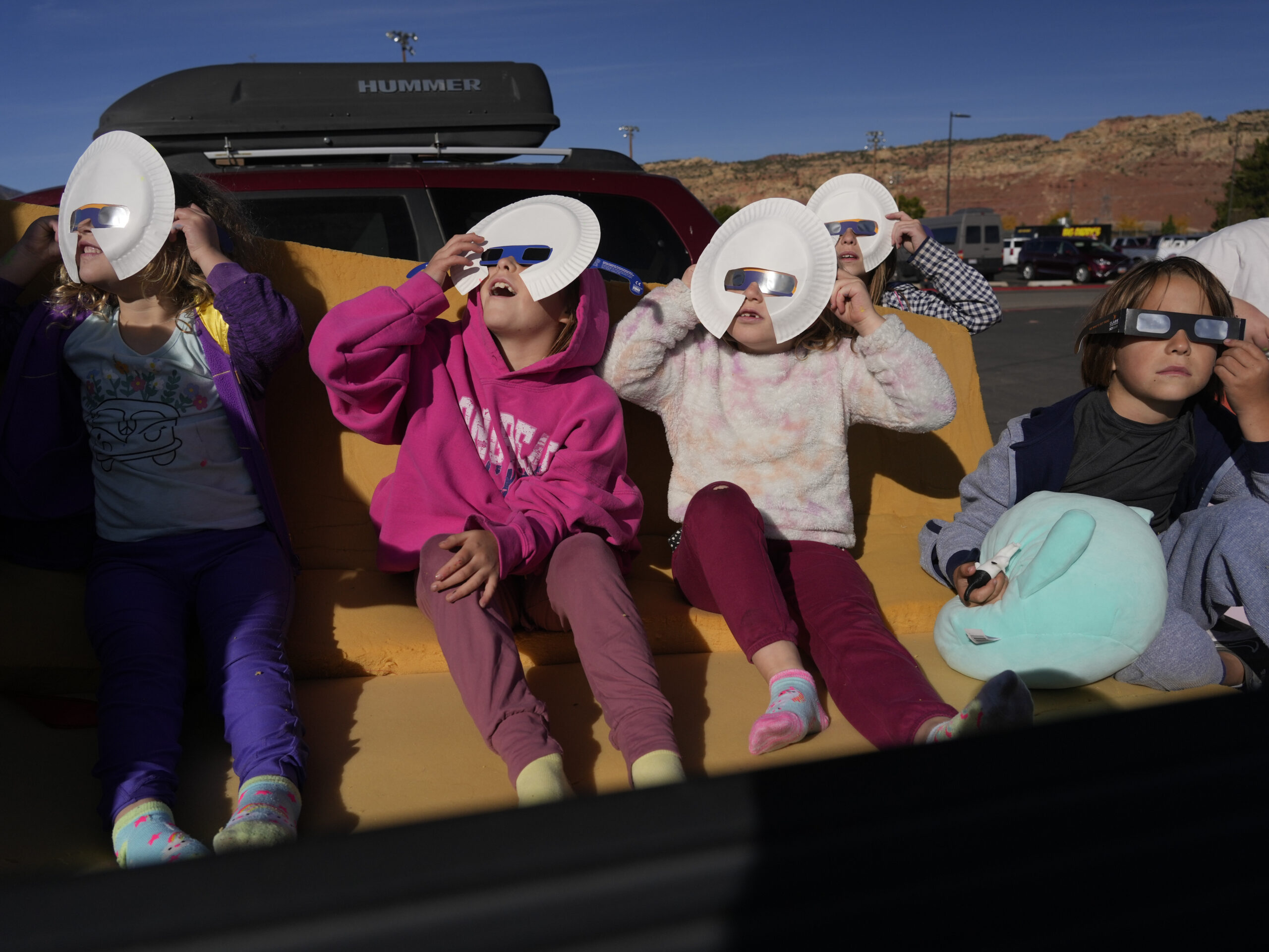 At a hardware store in Canton, workers took a load off to watch totality on the roof